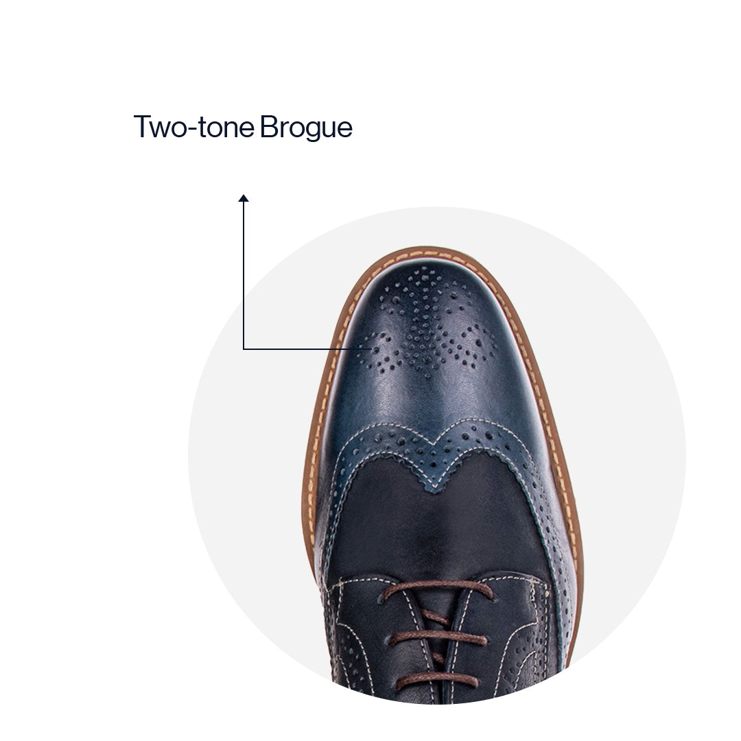 Two-Tone Brogue: This two-tone brogue is a comfortable and versatile addition to any closet. Try the more conservative burgundy or the more interesting blue, and then dress them up or quiet them down with the two included lace options. (The two-tone burgundy with baby blue laces is a stellar combination, though!)